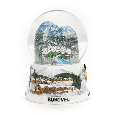 Скляна сніжна куля - традиційний подарунок. При струшуванні кулі піднімається штучний сніг, і куля всередині немов оживає. Розмір висота - 90 мм, ширина - 65 мм , діаметр кулі - 65 мм