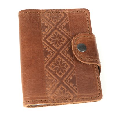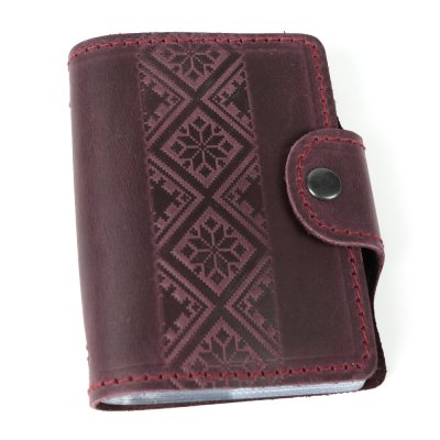 Обкладинка виконана з натуральної шкіри з тисненням традиційного візерунку.