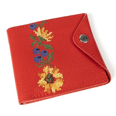 Гаманець виконаний з натуральної шкіри та прикрашений вишивкою у стилі "хрестик".
