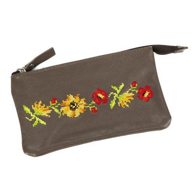 - Вишита косметичка виготовлена з натуральної шкіри. Передня частина декорована вишивкою хрестиком.