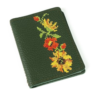 Обкладинка виконана з натуральної шкіри з вишивкою традиційного візерунку.