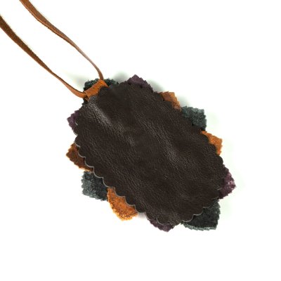 Матеріл: 100% шкіраРозмір підвіски: висота - 110 мм, ширина - 75мм Довжина шкіряної мотузки: 800 мм Колір - в асортименті.