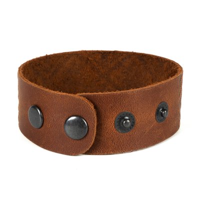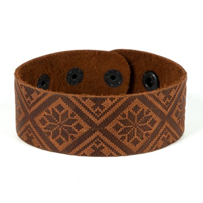 Браслет виконаний з натуральної шкіри, прикрашений традиційним візерунком, який виконаний технікою тиснення.