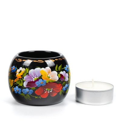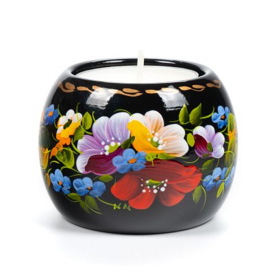Свічник розписаний в техніці Петриківський розпис.