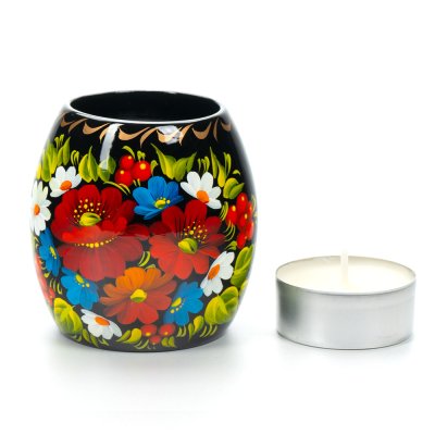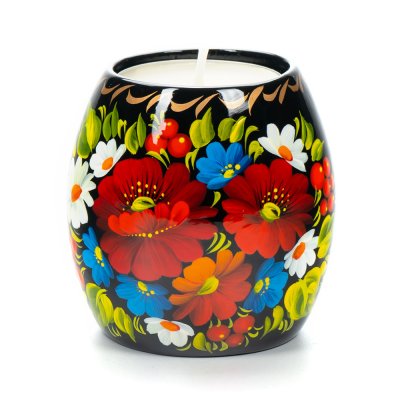 Свічник розписаний в техніці Петриківський розпис.