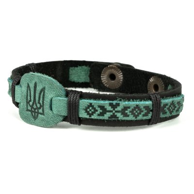 Браслет виконаний з натуральної шкіри, прикрашений Тризубом та візерунками, що виконані технікою тиснення.