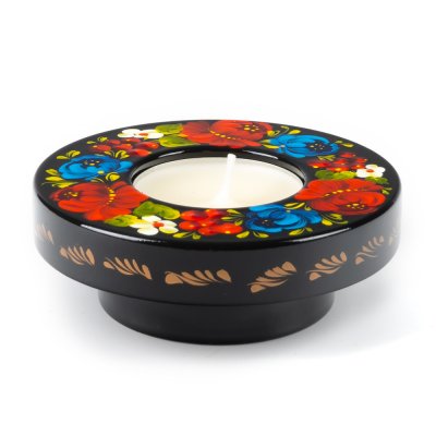 Свічник розписаний в техніці Петриківський розпис.
