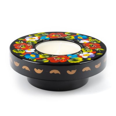 Свічник розписаний в техніці Петриківський розпис.
