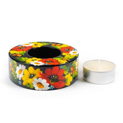 Свічник розписаний в техніці Петриківський розпис.