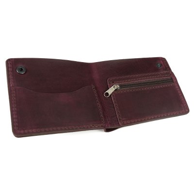 Гаманець виконаний з натуральної шкіри, прикрашений традиційним візерунком, який виконаний технікою тиснення.