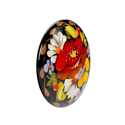 Артикул: БМ-01 Малюнок: 131 Брошка розписана в техніці Петриківський розпис.