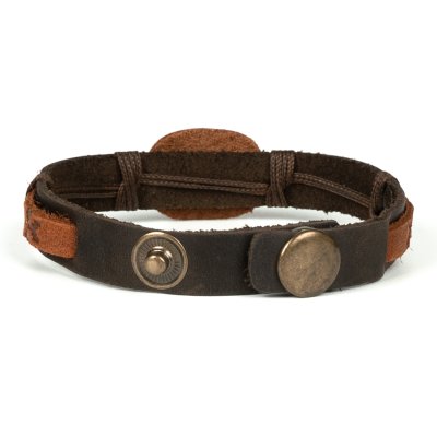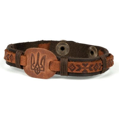 Браслет виконаний з натуральної шкіри, прикрашений Тризубом та візерунками, що виконані технікою тиснення.