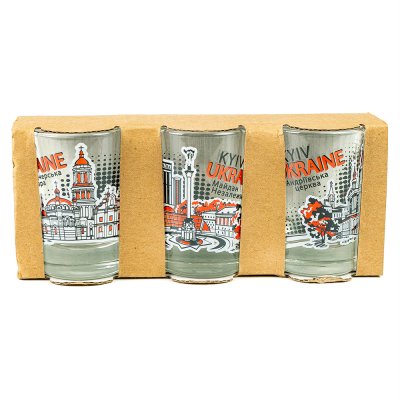Набір чарок - Визначні місця (поп-арт, червоний) 50 мл (3 шт.) (26405)