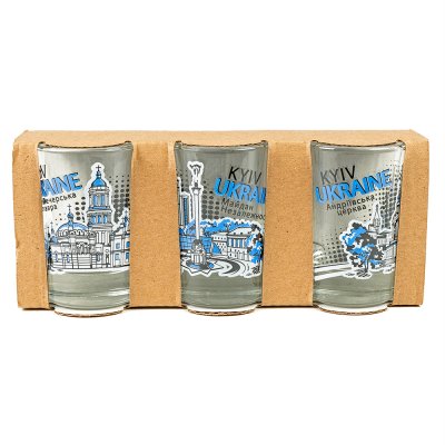 Набір чарок - Визначні місця (поп-арт, блакитний) 50 мл (3 шт.)