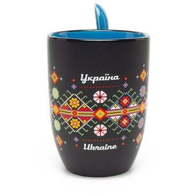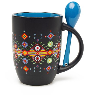 Горнятко "Вишивка кольорова", з ложечкою, блакитне 380 мл (32480)