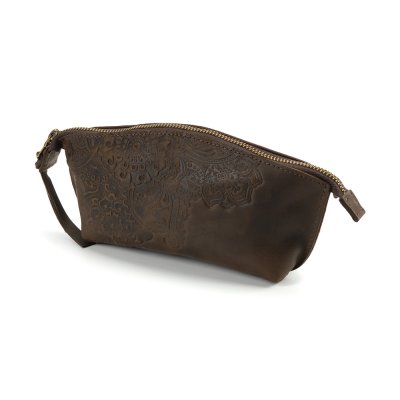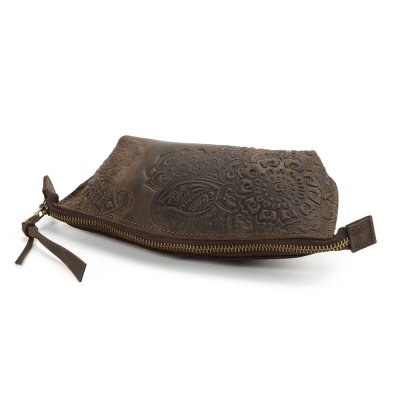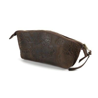 Косметичка виконана з натуральної шкіри з тисненням візерунку та є зручним аксесуаром для зберігання косметики.