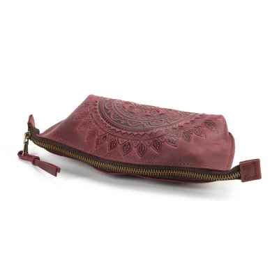 Косметичка виконана з натуральної шкіри з тисненням візерунку та є зручним аксесуаром для зберігання косметики.