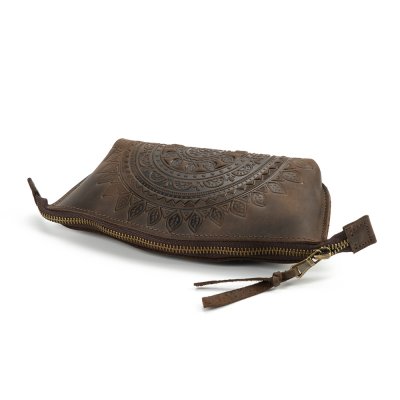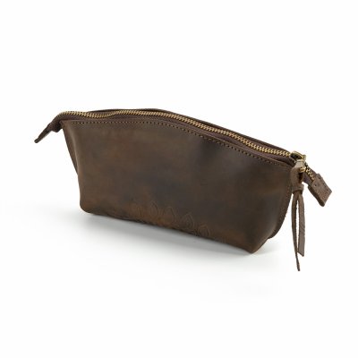 Косметичка виконана з натуральної шкіри з тисненням візерунку та є зручним аксесуаром для зберігання косметики.
