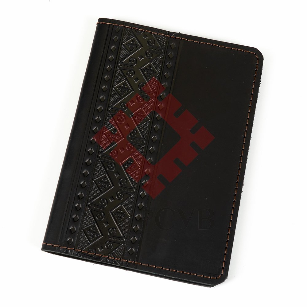 Обкладинка виконана з натуральної шкіри з тисненням візерунку та є зручним аксесуаром для зберігання паспорта.