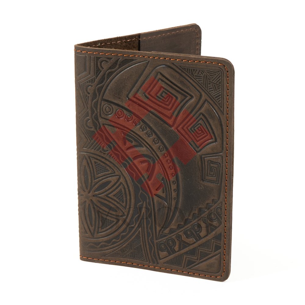 Обкладинка для паспорта "Гуцульський візерунок", темно-коричнева (25297)