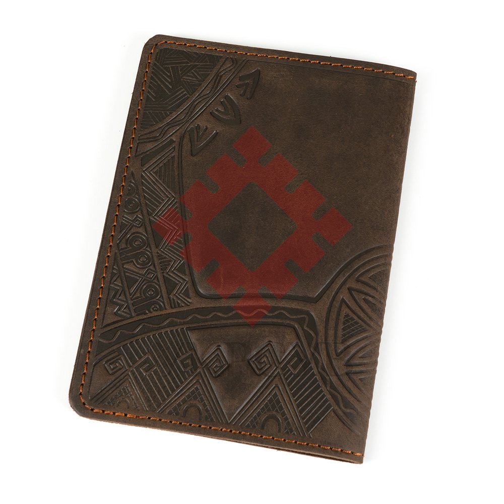 Обкладинка виконана з натуральної шкіри з тисненням візерунку та є зручним аксесуаром для зберігання паспорта.