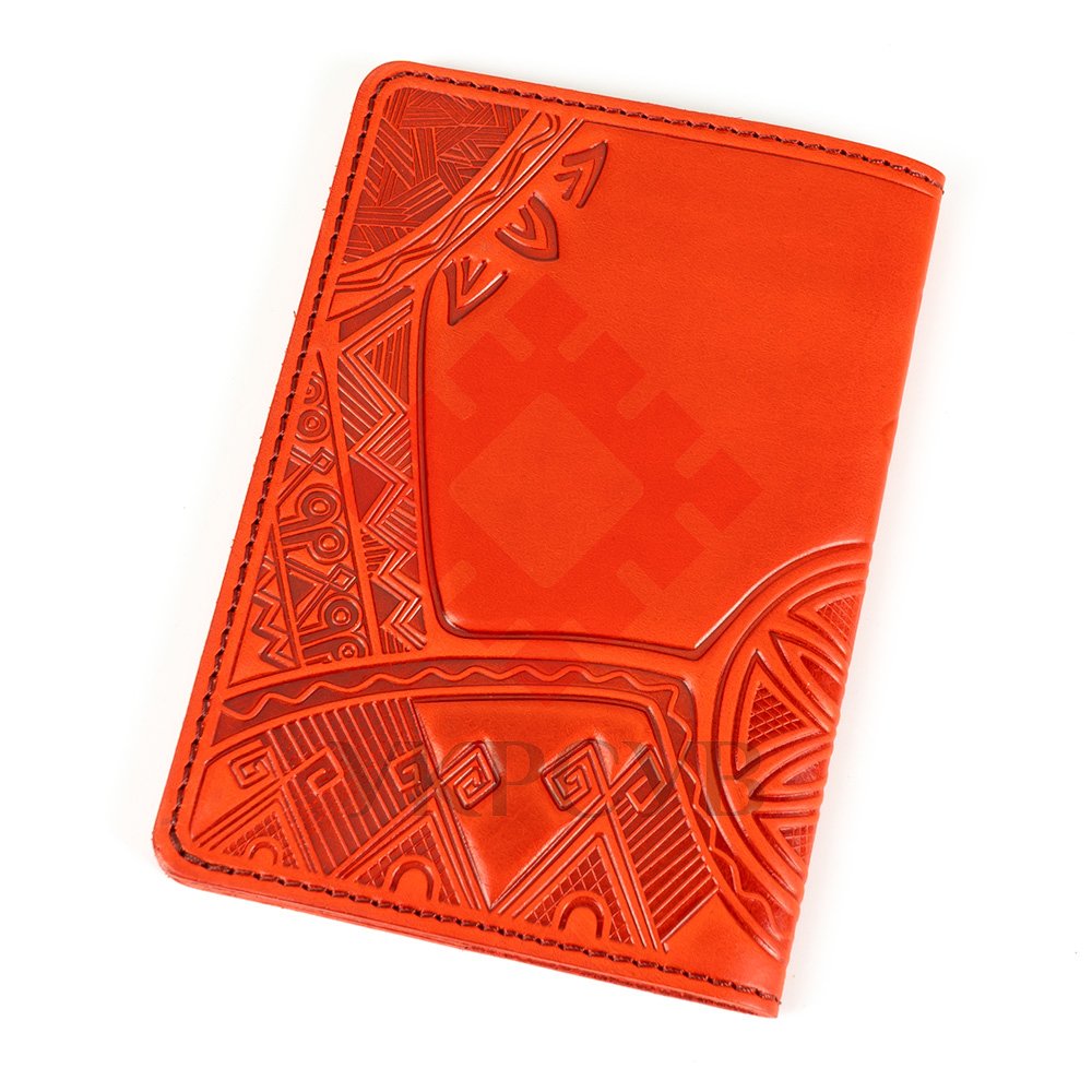 Обкладинка виконана з натуральної шкіри з тисненням візерунку та є зручним аксесуаром для зберігання паспорта.