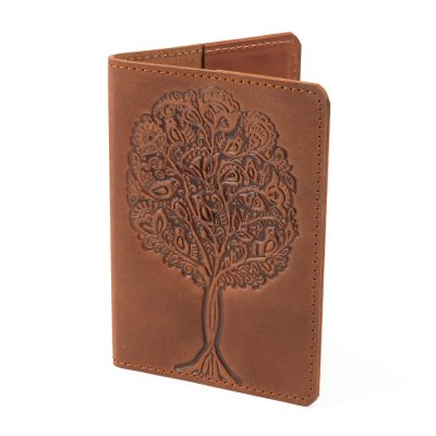 Обкладинка виконана з натуральної шкіри з тисненням візерунку та є зручним аксесуаром для зберігання паспорта.