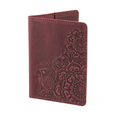 Обкладинка виконана з натуральної шкіри з тисненням візерунку та є зручним аксесуаром для зберігання паспорта.