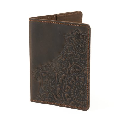 Обкладинка виконана з натуральної шкіри з тисненням візерунку та є зручним аксесуаром для зберігання паспорта.