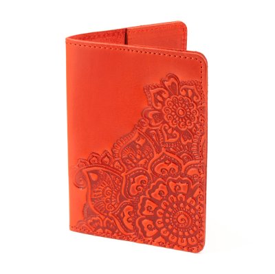 Обкладинка виконана з натуральної шкіри з тисненням візерунку та є зручним аксесуаром для зберігання паспорта.