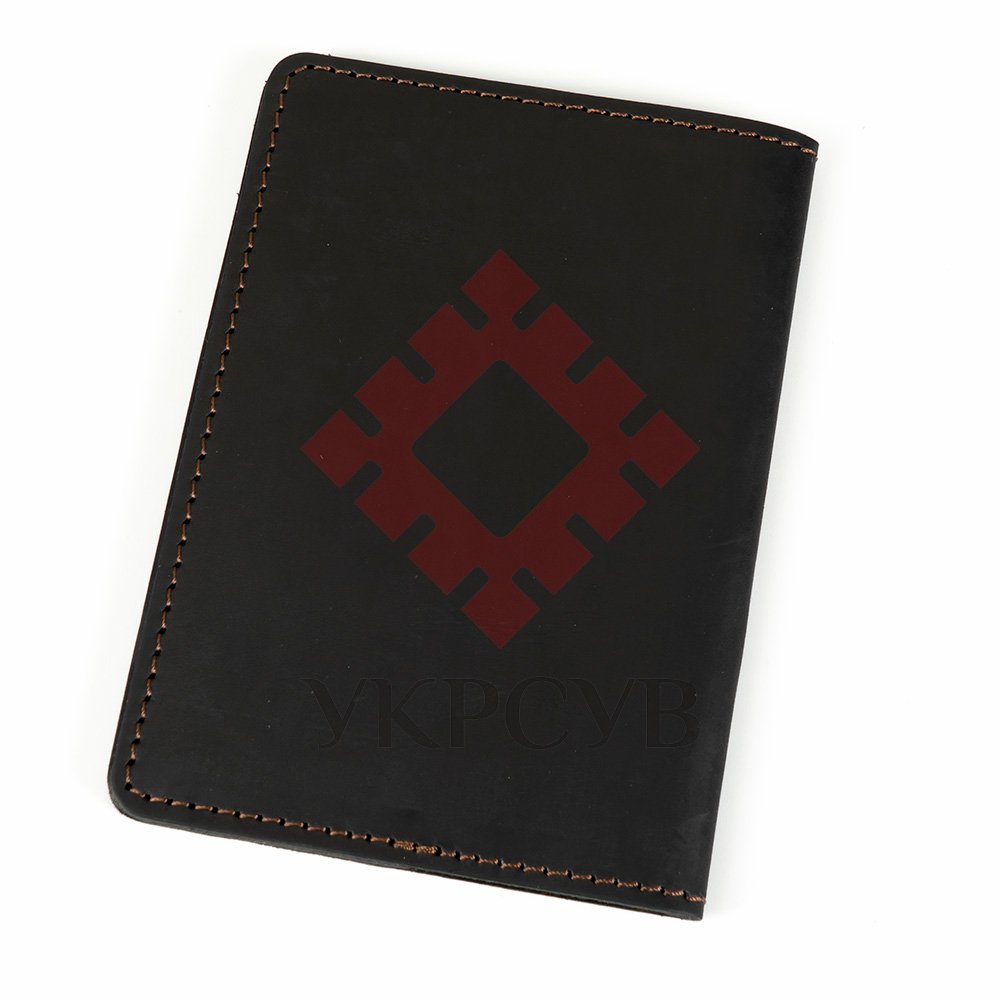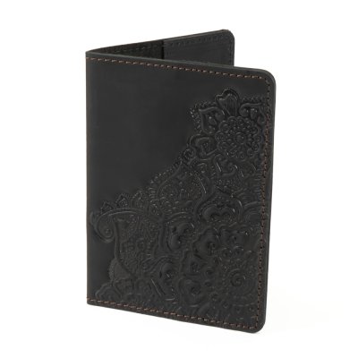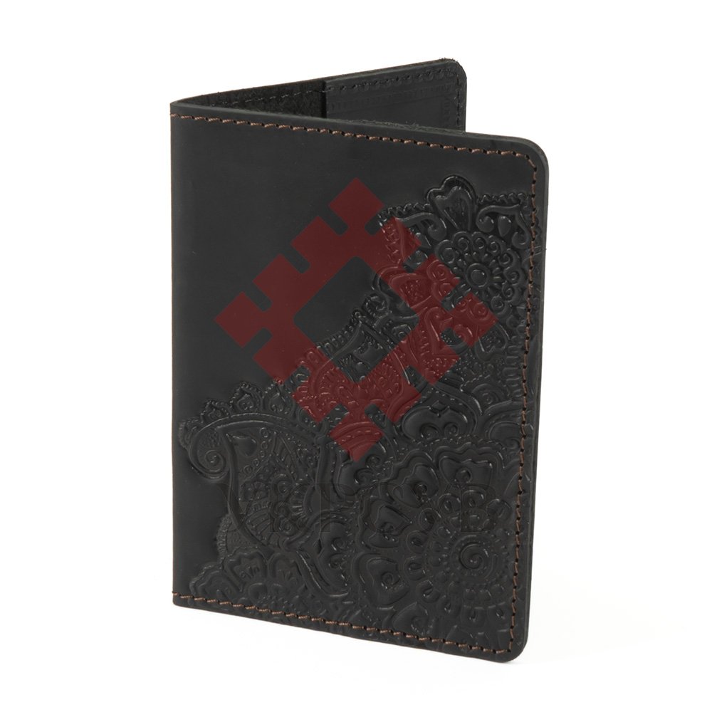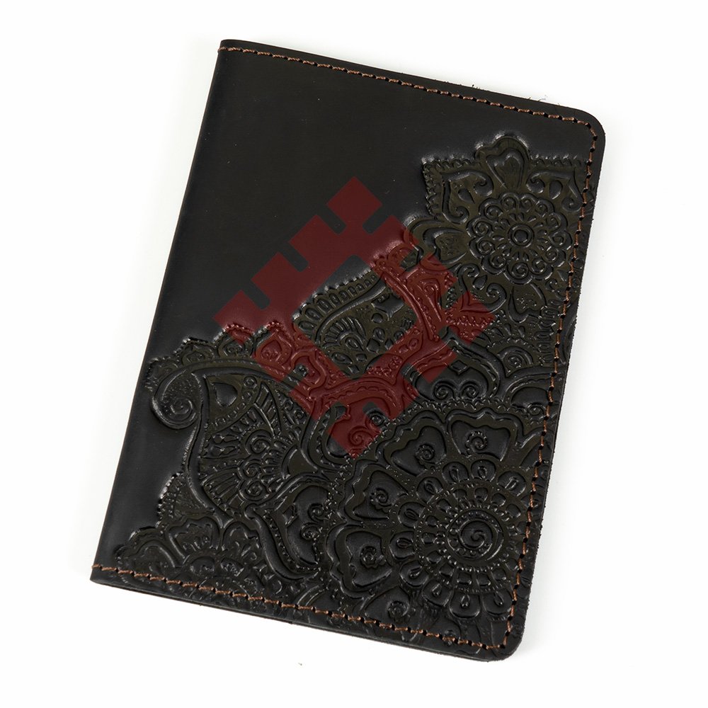 Обкладинка виконана з натуральної шкіри з тисненням візерунку та є зручним аксесуаром для зберігання паспорта.