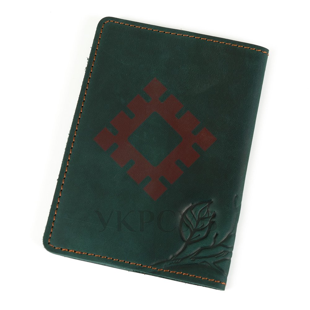 Обкладинка виконана з натуральної шкіри з тисненням візерунку та є зручним аксесуаром для зберігання паспорта.