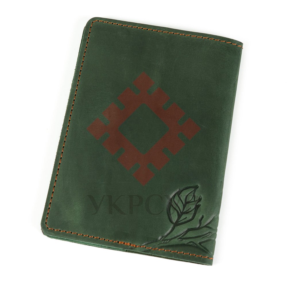 Обкладинка виконана з натуральної шкіри з тисненням візерунку та є зручним аксесуаром для зберігання паспорта.