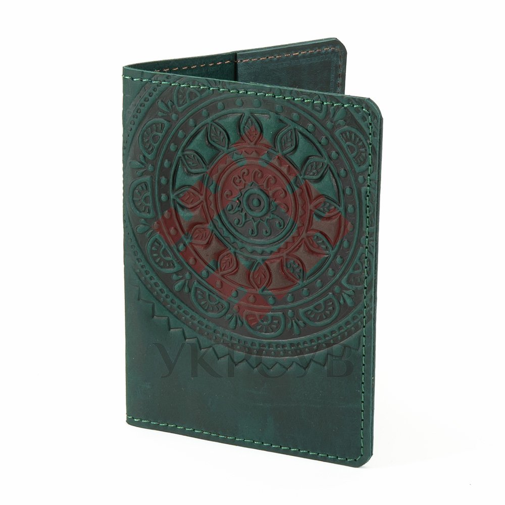 Обкладинка виконана з натуральної шкіри з тисненням візерунку та є зручним аксесуаром для зберігання паспорта.