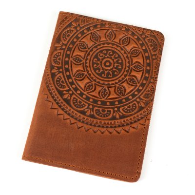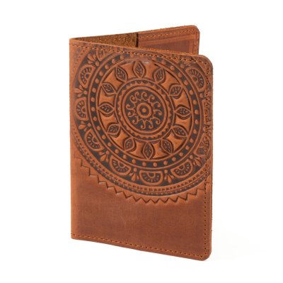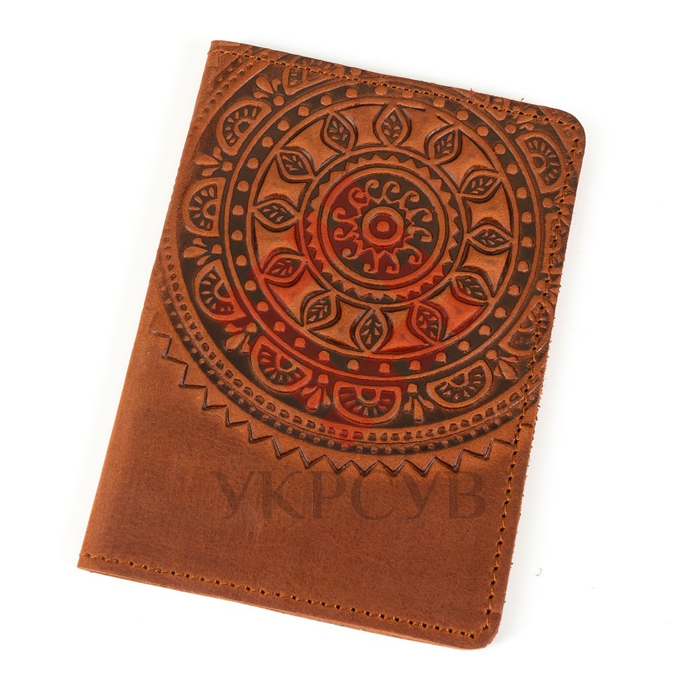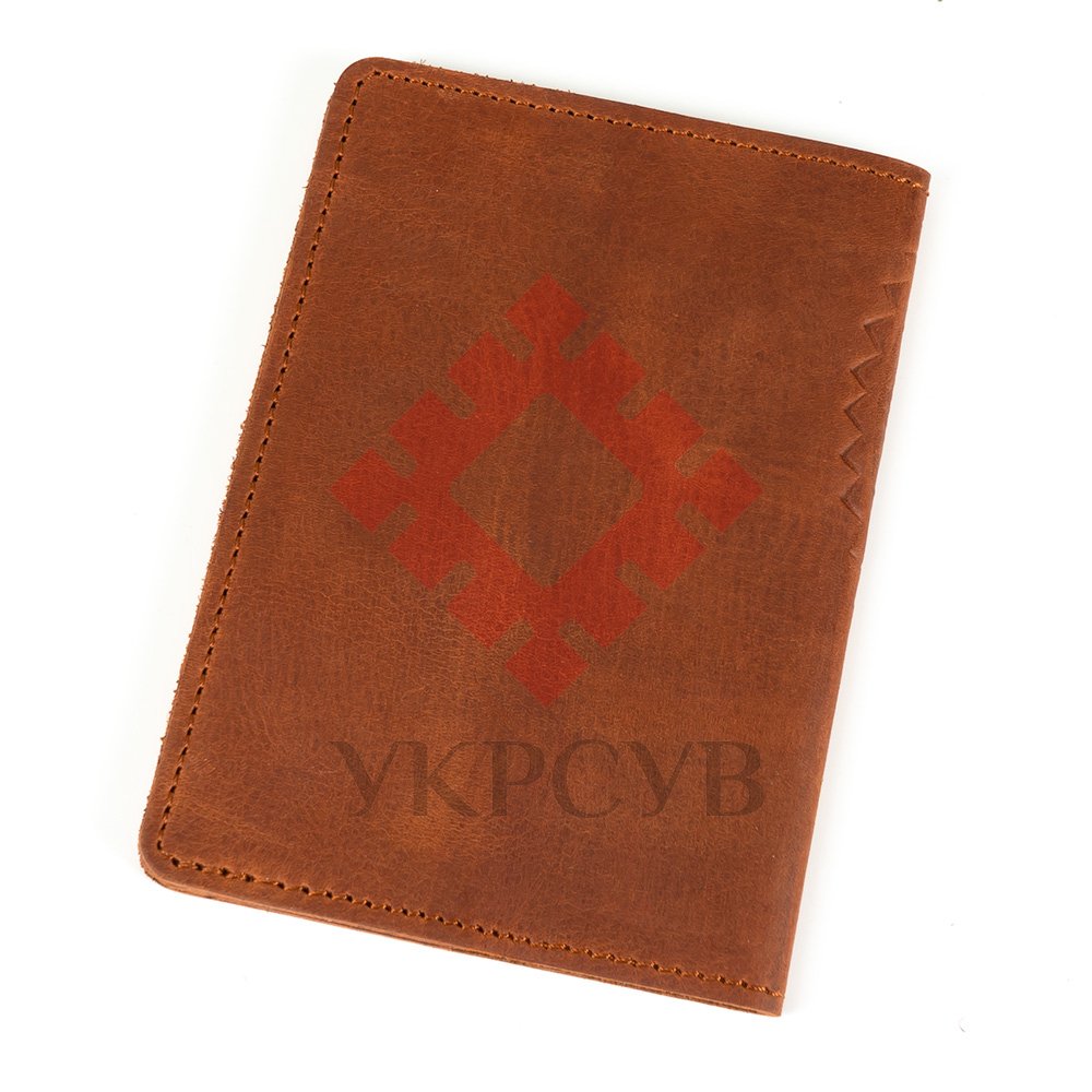 Обкладинка виконана з натуральної шкіри з тисненням візерунку та є зручним аксесуаром для зберігання паспорта.