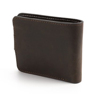 Гаманець виконаний з натуральної шкіри, з тисненням візерунку. Гаманець має два відділи для купюр, один відділ для монет, один - для фото та 5 відділів для карток.