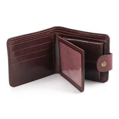 Гаманець виконаний з натуральної шкіри, з тисненням візерунку. Гаманець має два відділи для купюр, один відділ для монет, один - для фото та 5 відділів для карток.