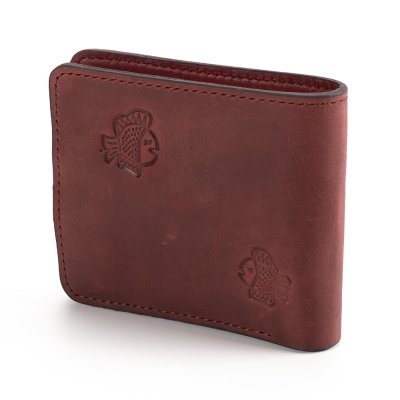 Гаманець виконаний з натуральної шкіри, з тисненням візерунку. Гаманець має два відділи для купюр, один відділ для монет, один - для фото та 5 відділів для карток.