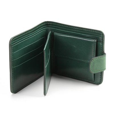 Гаманець виконаний з натуральної шкіри, з тисненням візерунку. Гаманець має два відділи для купюр, один відділ для монет, один - для фото та 5 відділів для карток.