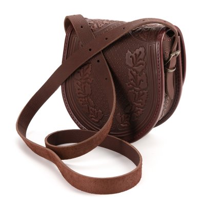 - Сумка "Калина" виготовлена з якісної, щільної натуральної шкіри. Декоративною родзинкою сумки є оригінальний орнамент в українському стилі, зроблений методом гарячого тиснення. Наплічний ремінь регулюється по довжині. Ширина - 25 мм. Сумка має оригінальну форму та оснащена двома кишенями: на передній стінці під клапаном (застібається кнопкою) та всередині. Розмір: 21х20х9 см.