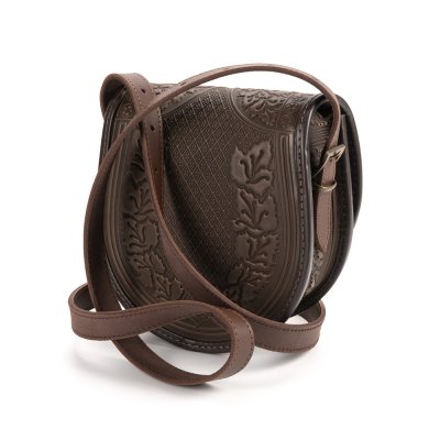 - Сумка "Калина" виготовлена з якісної, щільної натуральної шкіри. Декоративною родзинкою сумки є оригінальний орнамент в українському стилі, зроблений методом гарячого тиснення. Наплічний ремінь регулюється по довжині. Ширина - 25 мм. Сумка має оригінальну форму та оснащена двома кишенями: на передній стінці під клапаном (застібається кнопкою) та всередині. Розмір: 21х20х9 см.