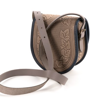- Сумка "Калина" виготовлена з якісної, щільної натуральної шкіри. Декоративною родзинкою сумки є оригінальний орнамент в українському стилі, зроблений методом гарячого тиснення. Наплічний ремінь регулюється по довжині. Ширина - 25 мм. Сумка має оригінальну форму та оснащена двома кишенями: на передній стінці під клапаном (застібається кнопкою) та всередині. Розмір: 21х20х9 см.
