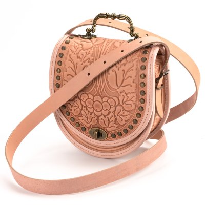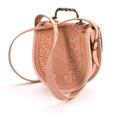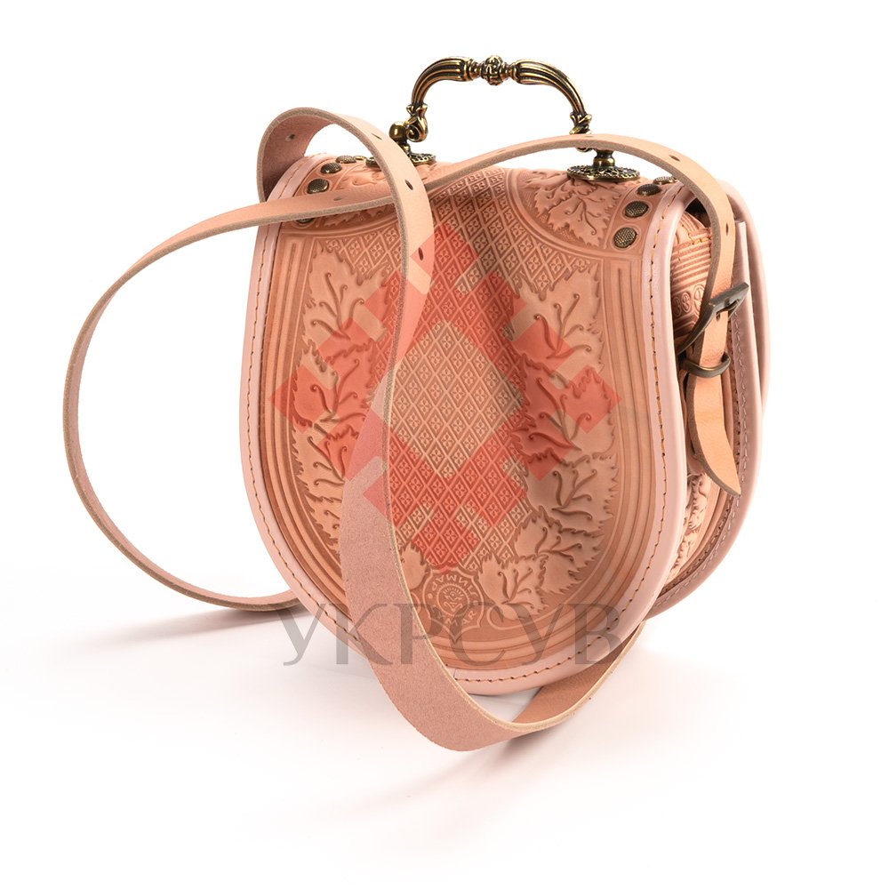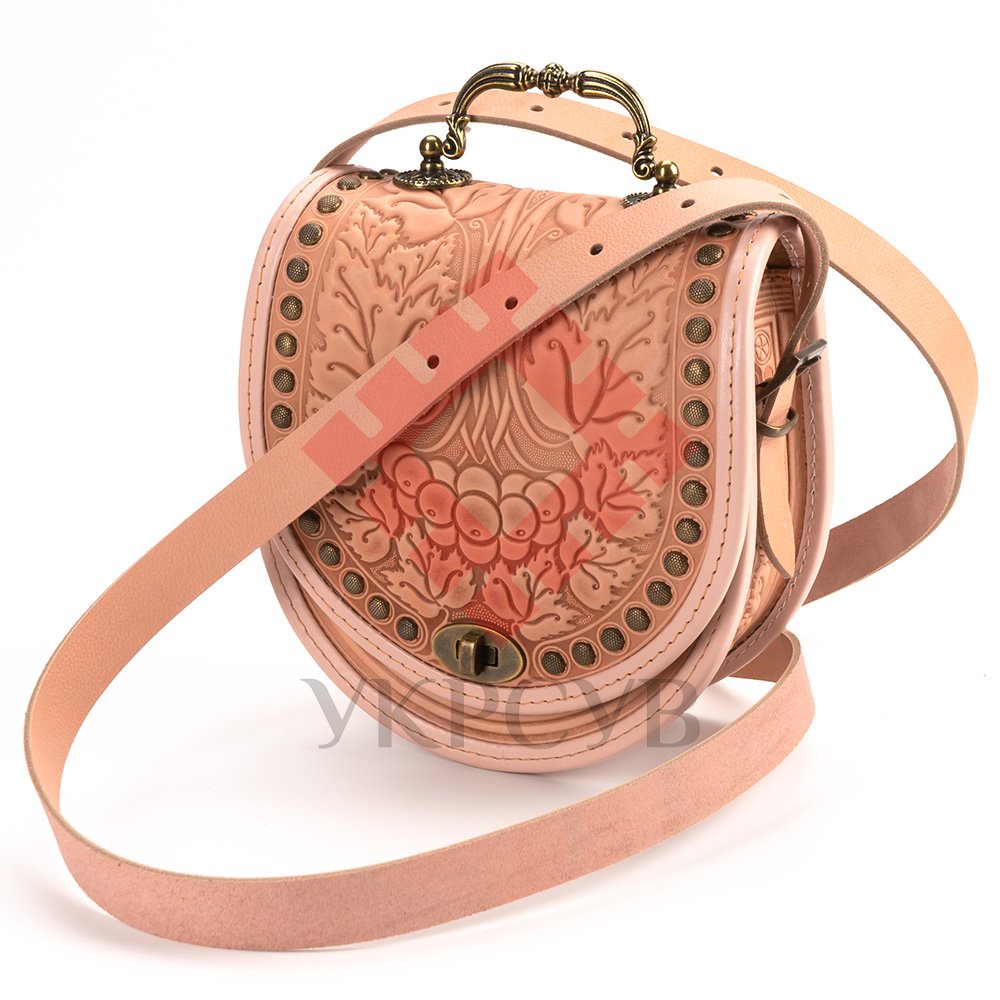 Сумка шкіряна "Калина", з металевою ручкою, пудрова (27600)