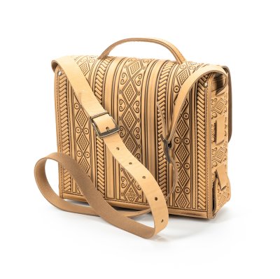 - Портфель шкіряний "Проект", виготовлений з якісної, щільної натуральної шкіри. Декоративною родзинкою сумки є оригінальний орнамент в українському стилі, зроблений методом гарячого тиснення. Наплічний ремінь регулюється по довжині. Ширина - 25 мм. Портфель оснащений двома кишенями: на передній стінці під клапаном (застібається кнопкою) та всередині. Розмір: 25х21х8 см.