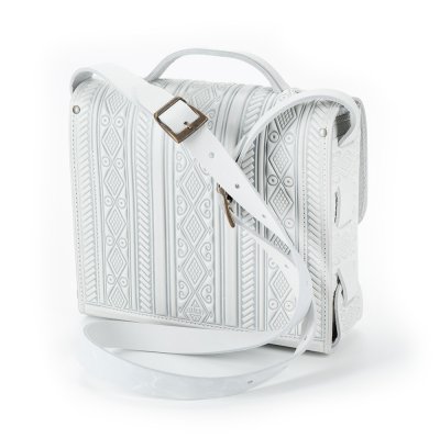 - Портфель шкіряний "Проект", виготовлений з якісної, щільної натуральної шкіри. Декоративною родзинкою сумки є оригінальний орнамент в українському стилі, зроблений методом гарячого тиснення. Наплічний ремінь регулюється по довжині. Ширина - 25 мм. Портфель оснащений двома кишенями: на передній стінці під клапаном (застібається кнопкою) та всередині. Розмір: 25х21х8 см.