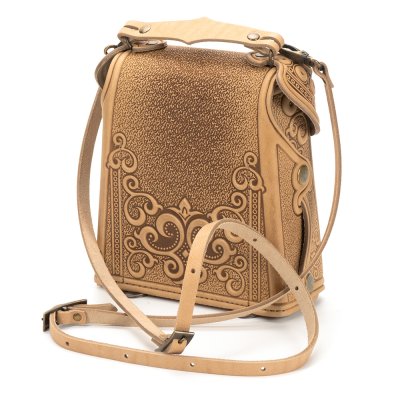 - Сумка-рюкзак шкіряна "Венеція", виготовлена з якісної, щільної натуральної шкіри. Декоративною родзинкою сумки є оригінальний орнамент в українському стилі, зроблений методом гарячого тиснення. Цю сумку-трансформер можна носити в трьох варіантах: - за ручку - через плече - як рюкзак Наплічний ремінь регулюється по довжині та трансформується у ремінці для рюкзака. Сумка оснащена кишенею для телефону. Розмір: 19х17х6,5 см.