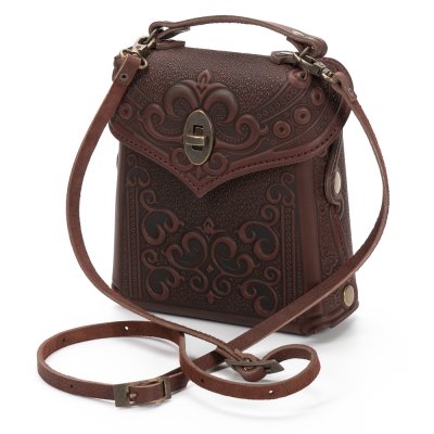 - Сумка-рюкзак шкіряна "Венеція", виготовлена з якісної, щільної натуральної шкіри. Декоративною родзинкою сумки є оригінальний орнамент в українському стилі, зроблений методом гарячого тиснення. Цю сумку-трансформер можна носити в трьох варіантах: - за ручку - через плече - як рюкзак Наплічний ремінь регулюється по довжині та трансформується у ремінці для рюкзака. Сумка оснащена кишенею для телефону. Розмір: 19х17х6,5 см.