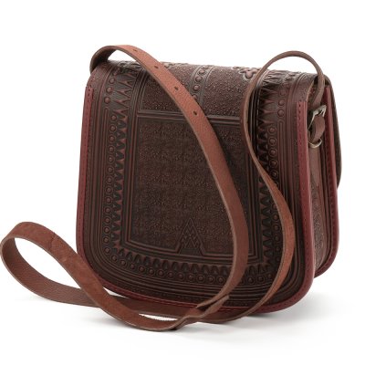 - Сумка "Мисливська" виготовлена з якісної, щільної натуральної шкіри. Декоративною родзинкою сумки є оригінальний орнамент, зроблений методом гарячого тиснення. Наплічний ремінь регулюється по довжині. Ширина - 25 мм. Сумка має оригінальну форму та оснащена двома кишенями: на передній стінці під клапаном (застібається кнопкою) та всередині. Розмір: 25х26х10 см.