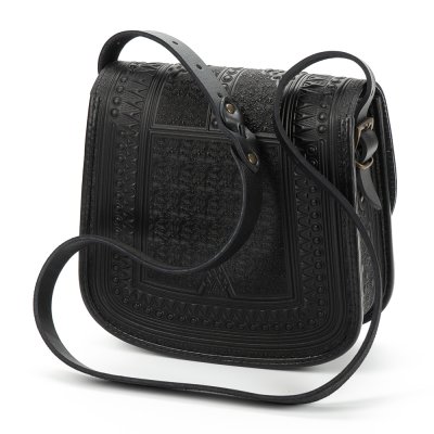 - Сумка "Мисливська" виготовлена з якісної, щільної натуральної шкіри. Декоративною родзинкою сумки є оригінальний орнамент, зроблений методом гарячого тиснення. Наплічний ремінь регулюється по довжині. Ширина - 25 мм. Сумка має оригінальну форму та оснащена двома кишенями: на передній стінці під клапаном (застібається кнопкою) та всередині. Розмір: 25х26х10 см.