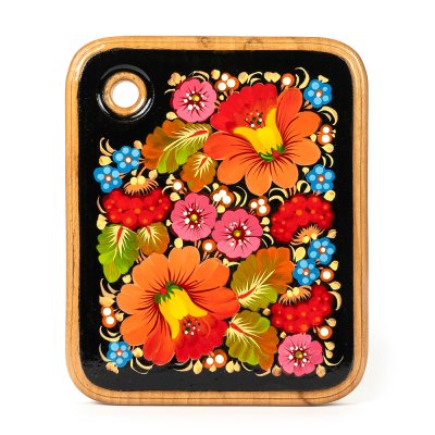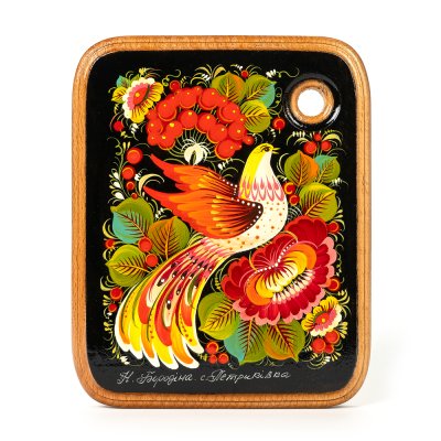 Дошка обробна з петриківським розписом. Зворотний бік - робоча поверхня.